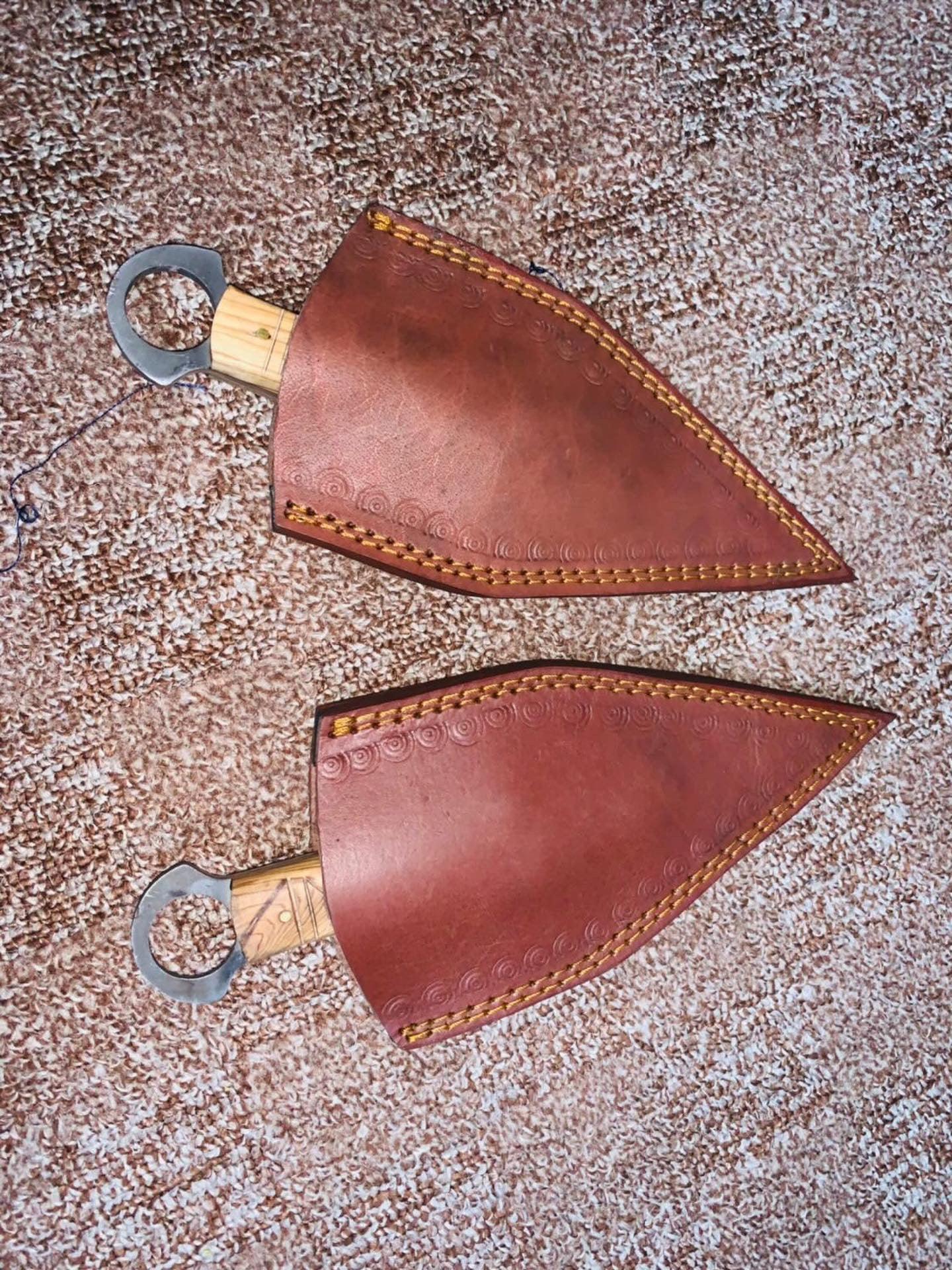 This set features five handmade 10-inch throwing knives inspired by anime designs, forged from durable 1095 high-carbon steel for strength and precision. Each knife has a wooden handle with intricate engravings for added detail and a secure grip, making them perfect for target practice, collection, or display.