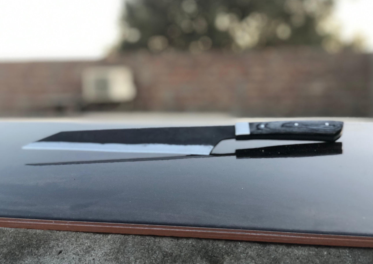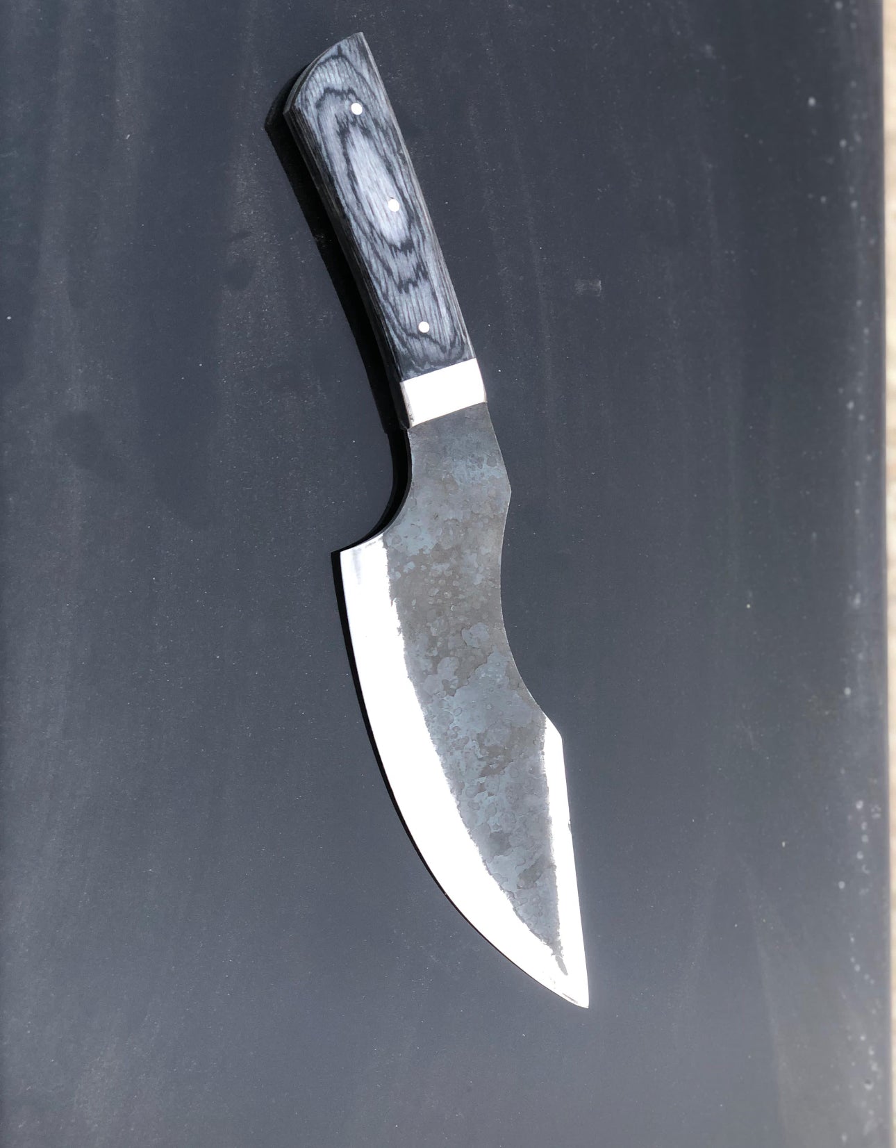 • Handle: Full-tang construction with elegant, contoured handles in a durable black wood or G-10 style composite for a secure, comfortable, and hygienic grip.